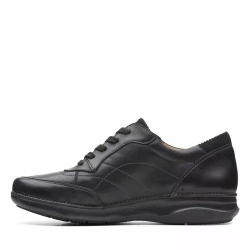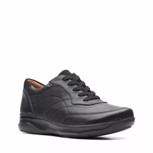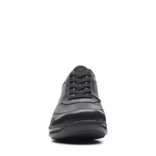 Easy breezy summer wear? A given, in comfy casual shoe Appley Tie. Soft black leather complements a streamlined rubber sole. Sustainable steps come from the fully recycled heel cup, and a sole, footbed and sock that also feature recycled materials.