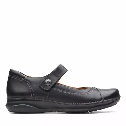 Appley Walk delivers an easy wearing go-to casual style, packed with comfort features. Premium black leather wraps the foot and the innovative eco-foam OrthoLite® Contoured Comfort footbed cushions each step. Creating a conscious choice, the heel cup is fully recycled while the grippy rubber sole and inner sock also feature recycled materials. A crafted profile.