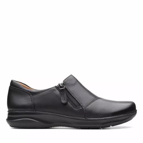 Smart-casual wear thats still super-comfy? A given, in Appley Zip. The premium black leather upper complements a curved rubber sole. Sustainable steps come from the fully recycled heel cup, and a sole, footbed and sock that also feature recycled material.