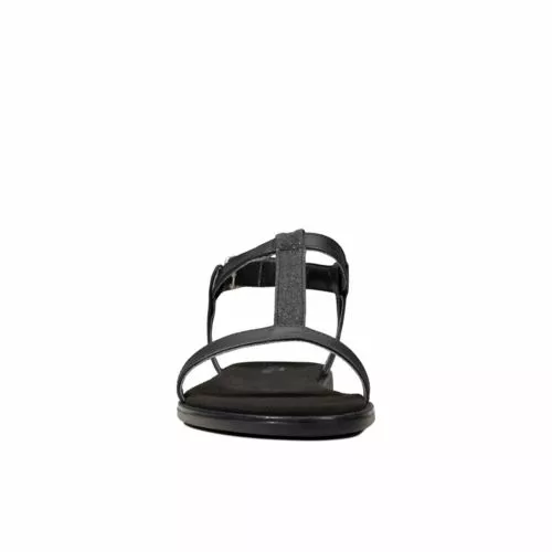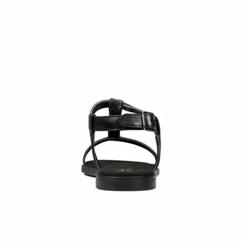 Perfect for taking on holiday, these flat T-bar sandals offer a minimalist look thanks to the strappy upper and simple buckle fastening. Featuring an ankle strap for a secure fit, a grippy rubber sole and soft textile footbed