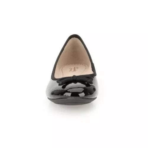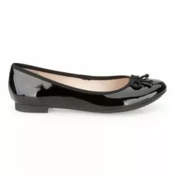 These ballerina-styled pumps in glossy black patent non-leather are ther perfect fashionable flats. Classic yet contemporary with a cute string bow trim and Cushion soft underfoot comfort.