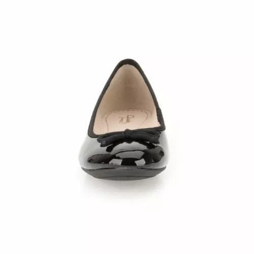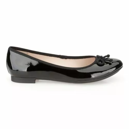 These ballerina-styled pumps in glossy black patent non-leather are ther perfect fashionable flats. Classic yet contemporary with a cute string bow trim and Cushionsoft underfoot comfort.