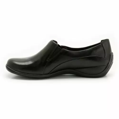 Women’s shoes in soft black leather with underfoot cushioning and a flexible sole for sublime comfort. Ideal for everyday, work, school or college wear.