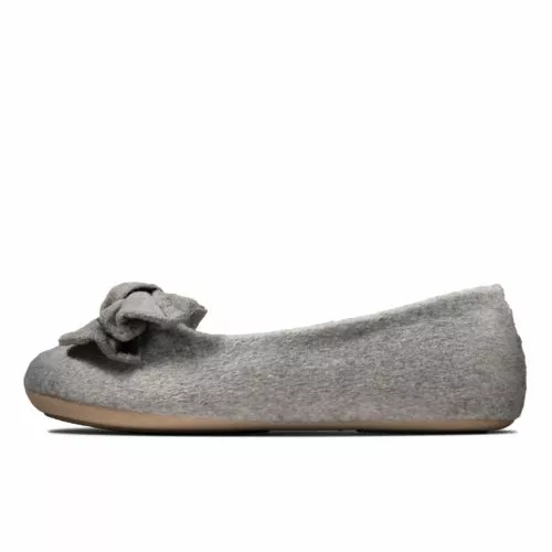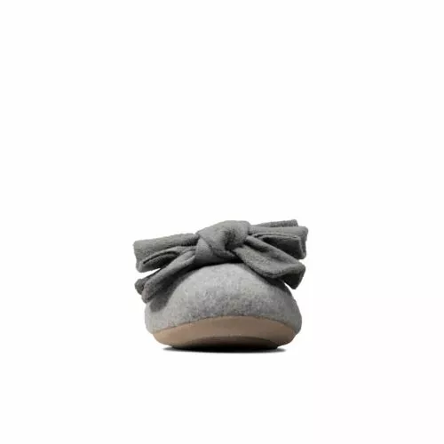 With a feminine edge, these grey felt slippers have a rounded toe and a deconstructed bow embellishment. This sleek silhouette is fun and flexible and offers maximum comfort thanks to the warm faux teddy fur sock and hidden foam cushioning.