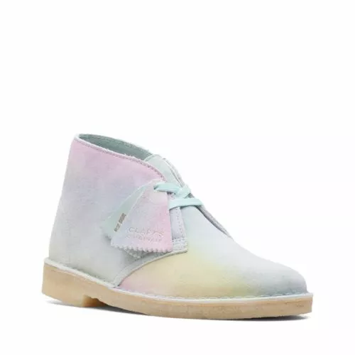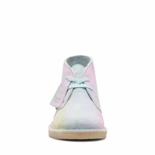Beautifully subtle, a soft tie-dye effect gives an easy-wear finish to our iconic Desert Boot thats perfect for summer. Muted pinks, blues and yellows melt into the airy suede upper, teaming with an FSC-certified natural crepe sole.