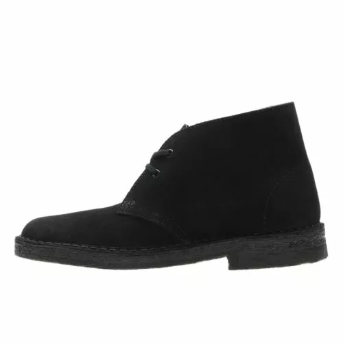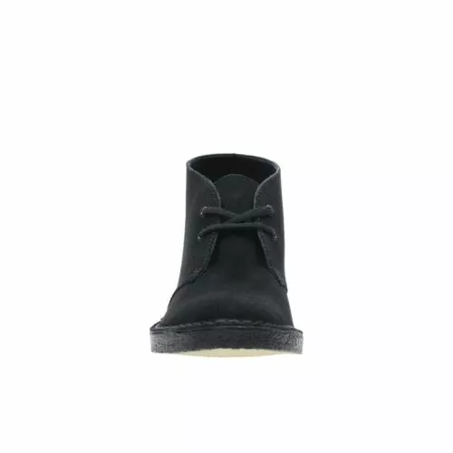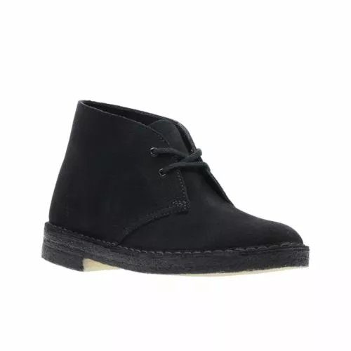 Women’s Desert Boots, black suede – Our iconic women’s Desert Boot is designed in aunthetic Charles F. Stead black suede. Launched in 1950 by Nathan Clark, the originals Clarks Desert Boot was inspired by a rough boot from Cairo’s Old Bazaar. An instant hit, it became the footwear of choice for off-duty army officers. The black suede upper is teamed with clean lines, an unfussy lace fastening and our signature crepe sole.