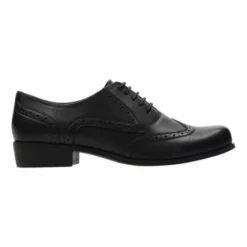 A standard fit modern women’s brogue, Falconet Uma feels slightly elevated at the heel and features a smooth black leather upper with punched detail. Textile linings feel comfortable against the foot. A great contemporary casual look that is a staple in any wardrobe. Heel height: 3cm.