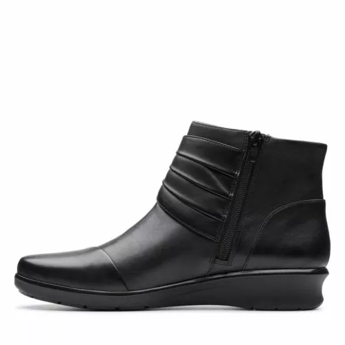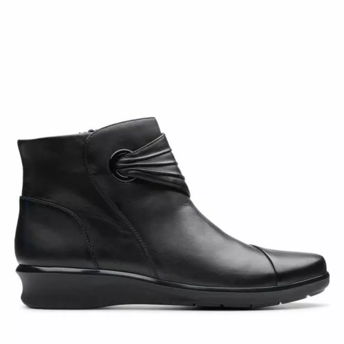 The Hope twirl by Clarks collection matches premium materials with comfort technology. Its full grain leather upper features a stretch-loop design adding elevated interest to this women’s bootie. The TR outsole adds ultra-lightweight support and durability, appropriate for all seasons. Inside, an Ortholite foot bed with cushion soft technology bring maximum comfort for long hours standing or walking.