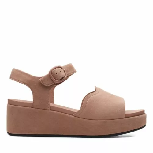 Kimmei Way is a contemporary two-part sandal that feels fresh and ultra-wearable. The upper in premium dark blush suede sits on a wedge heel with just the right amount of elevation.