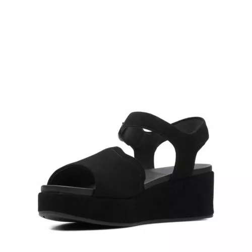 Kimmei Way is a contemporary two-part sandal that feels fresh and ultra-wearable. The upper in premium black suede sits on a wedge heel with just the right amount of elevation.