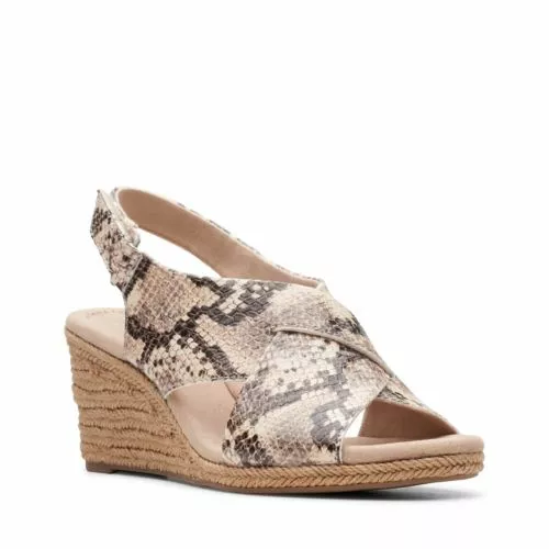 These lightweight summer wedge sandals team a gorgeous snake-patterned upper with a 7cm wedge heel. A rubber sole aids grip, an EVA midsole ensures flexibility of the foot and Cushion Soft foam layers guarantee comfort underfoot. Finished with a secure riptape fastening, you can wear these comfortably for hours.