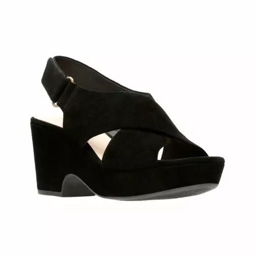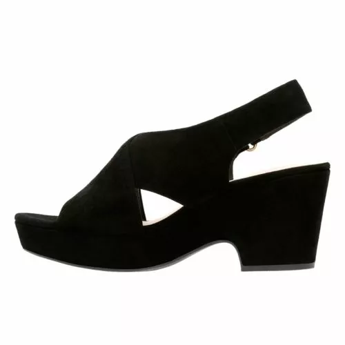 Maritsa Lara, women’s sandals, black suede – Great for holidays or smart casual occasions, these black suede women’s sandals feature a chunky 7.5cm heel. Rubber on the sole helps with grip, a riptape fastening offers a secure fit and breathable leather linings and a leather sock with a suede trim provides luxurious comfort underfoot.