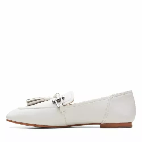 Add a timeless style to your collection with these loafers from Clarks. Made with a soft responsibly sourced leather upper, this pair sits on an anti-slip resin sole for a durable and supportive wear. With a silver toned buckle adorning the front, these contemporary loafers are finished with a tonal tassel detail.