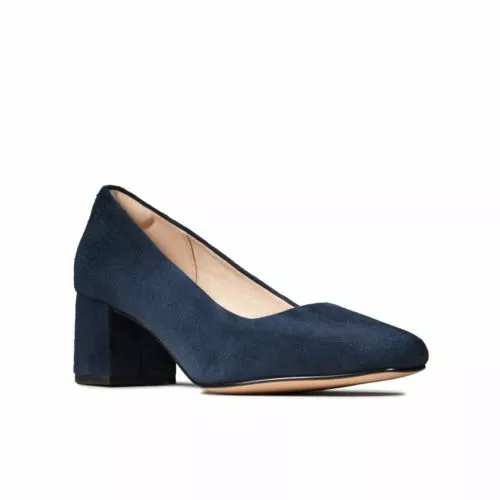 With a slightly flared 6.5cm heel, these updated court shoes will become a wardrobe staple. Crafted from a soft navy suede, these shoes feature our dual density Cushion Plus technology for targeted cushioning that lasts.