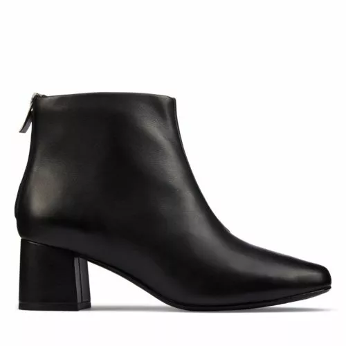 With a wearable 5.5cm heel, Sheer55 Zip is an effortless ankle boot with back zip for easy on/off and sleek lines. In premium black leather and an on-trend square toe, it is a contemporary classic moving from office to weekend.