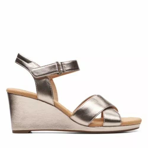 Elevate your evening look with curvy wedge sandal Tulip Gem. Every step is super-stable thanks to an adjustable strap and rubber sole, and soft, chic metallic silver leather wraps feet in comfort.