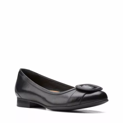 This versatile flat pairs a ballet-flat inspired upper crafted from rich leather with a short stacked heel. A decorative buckle detail at the toe adds subtle charm, and its full grain leather linings and sockliner surround the foot in soft comfort.