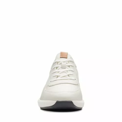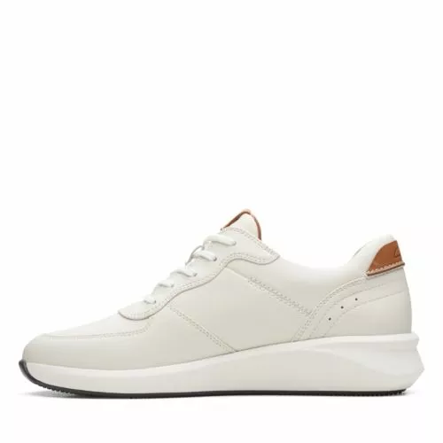 A sleek silhouette and athletic aesthetic define contemporary trainer Un Rio Sprint. Soft white leather with neutral accents creates a casual track-inspired design, and the flexible sole has plenty of traction, without bulk or weight.