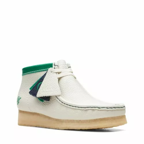 Inspired by vintage 90s streetwear, our varsity Wallabee Boot melds nostalgic collegiate styling with classic Clarks DNA. A stadium green collar complements the full-grain cream tumbled leather upper.