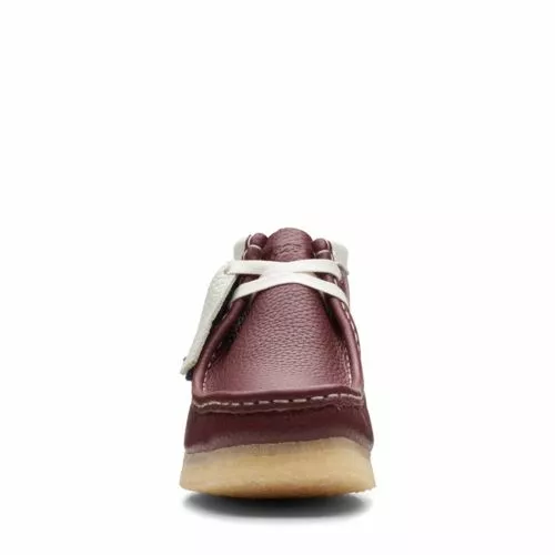 Inspired by vintage 90s streetwear, our varsity Wallabee Boot melds nostalgic collegiate styling with classic Clarks DNA. A contrast white collar complements the deconstructed burgundy tumbled leather upper.